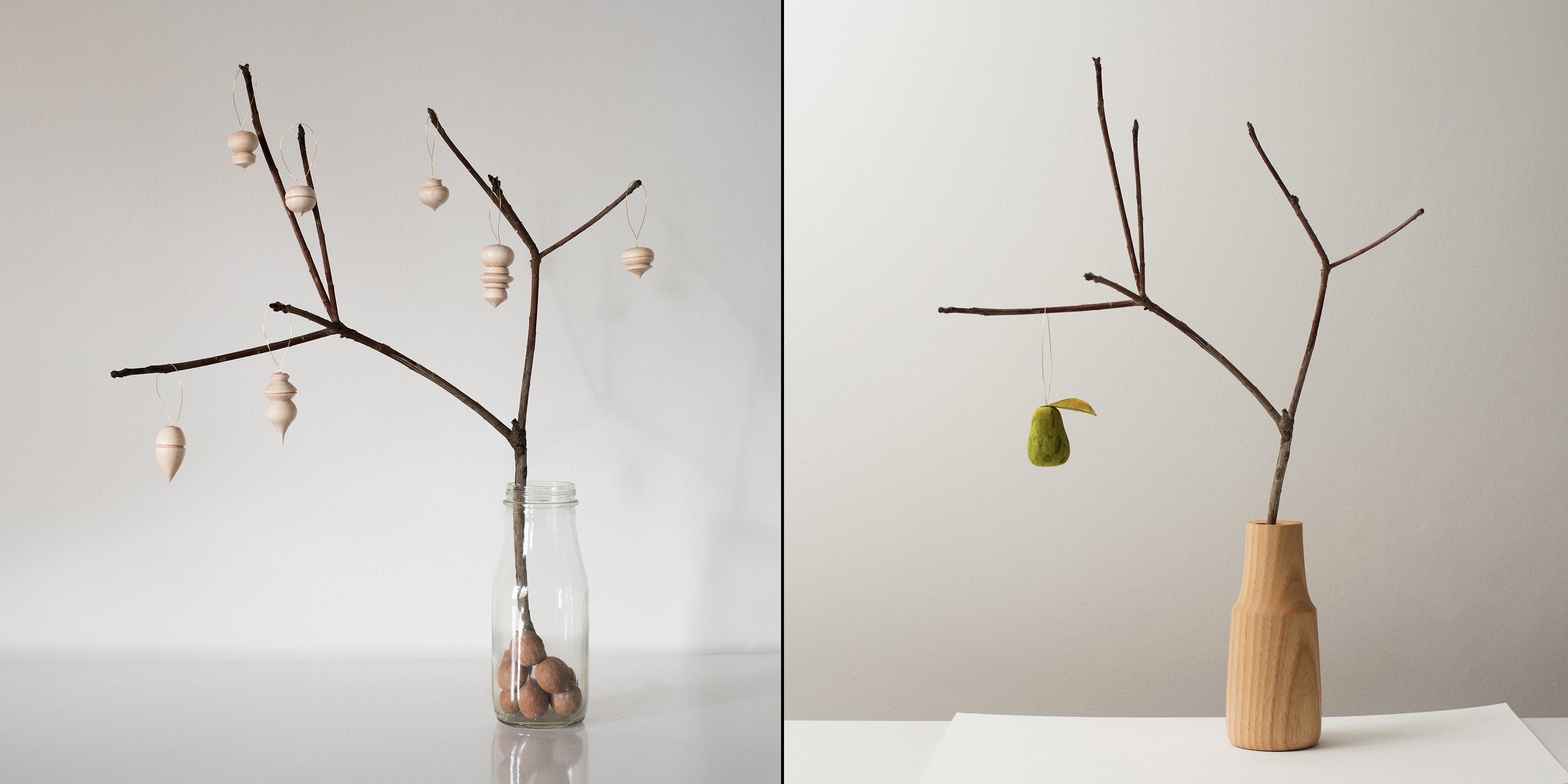 Another decorative function of dried branches is to act as mini trees to hold ornaments that can be changed out to fit the season or holiday.