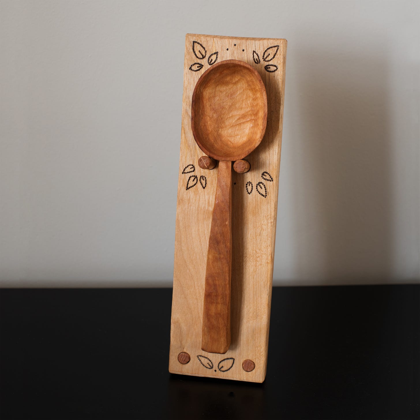 Another strategy I have used since some of my first classes is to fill a niche. The other people in my woodturning workshop classes preferred to make large bowls. I picked up their off cuts, and scavenged the garbage bin next to the bandsaw for scraps to make small things like wands and acorn ornaments. Later, when I learned spoon carving, I would keep the slice of a log containing the center pith that’s left over after cutting it up for two bowls, which is perfect for spoons.