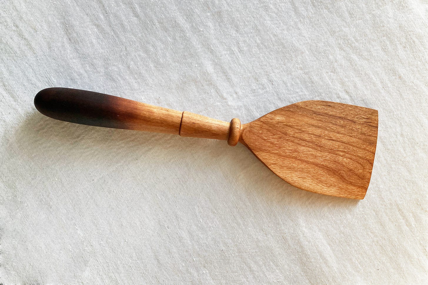 Charring a bowl with a propane torch can give a very dramatic effect to your work with its blackened, textured and often cracked surface. Toasting a piece with a heat gun is a different, gentler option to darken the color or create gradation without dealing with the torch set-up. I first tried this method on walnut spoon handles last year with good results. Similar to charring with the torch, there is a high risk of cracking, so accept that the results might be unpredictable.