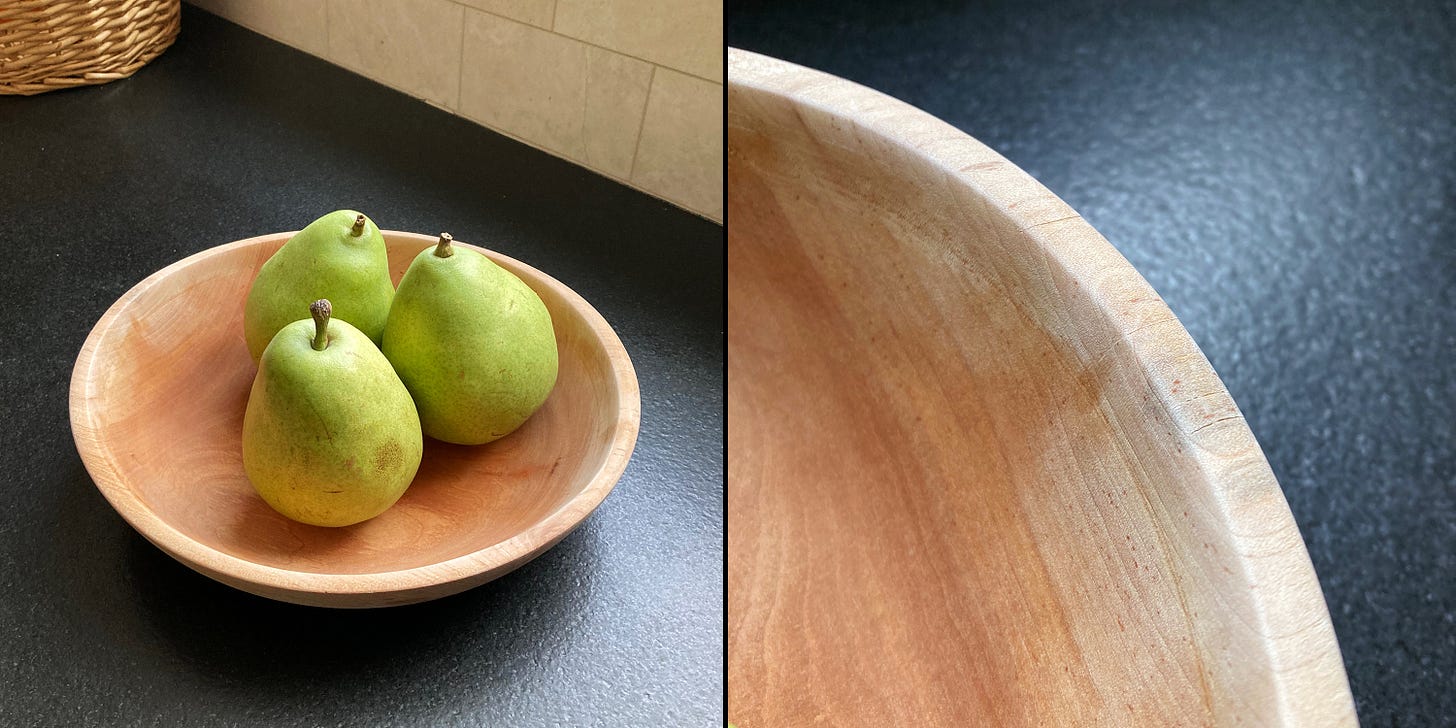 I’ve learned a lot about finishes since I made this. I’ve done a lot of reading and consulting with fellow woodturners about the best options for food-safe finishes. There are a few choices available, and some are better than others depending on the quality of the wood and its grain.