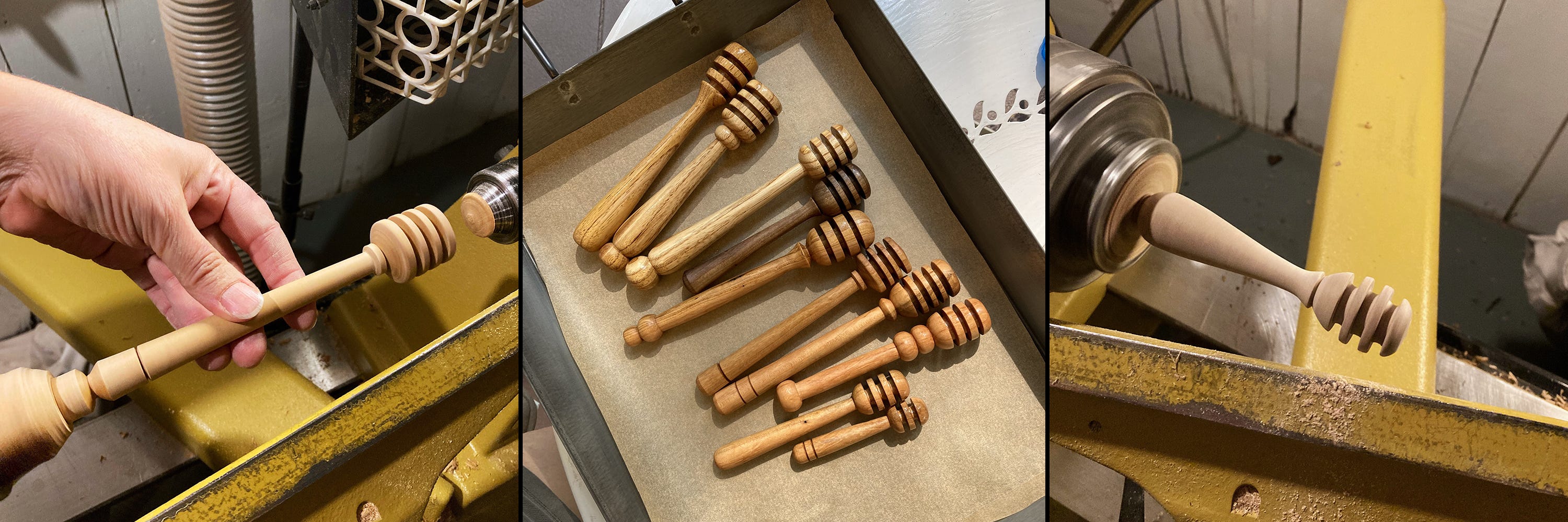 In preparation for the Honey Harvest Festival, I made a lot of honey dippers and enjoyed experimenting with some new shapes. I even made some tiny ones that I turned into necklace pendants.